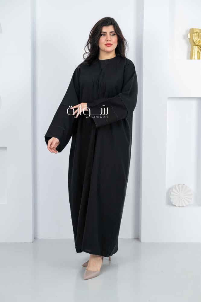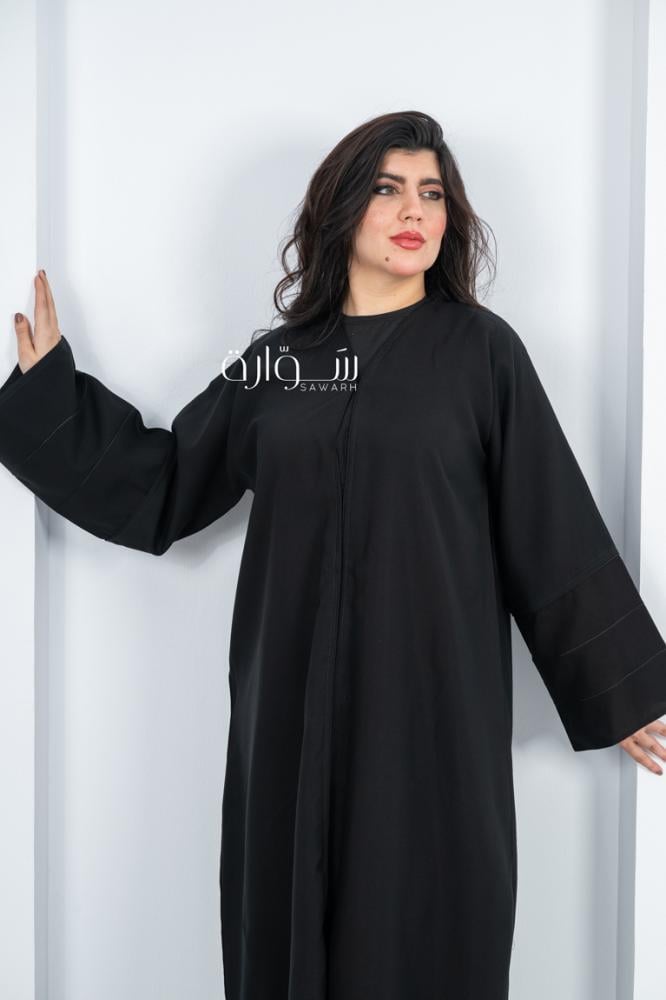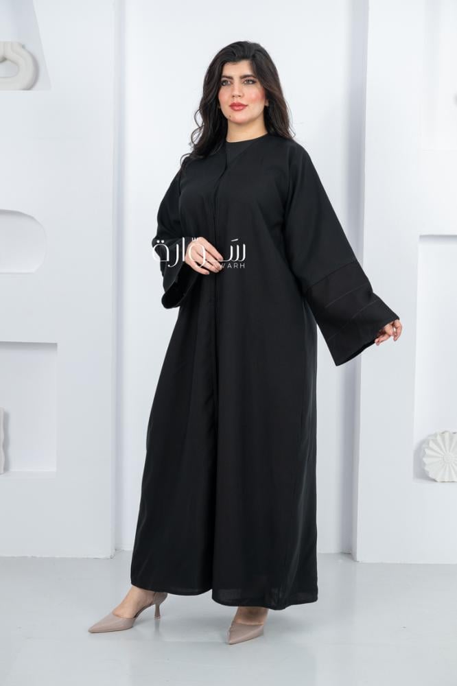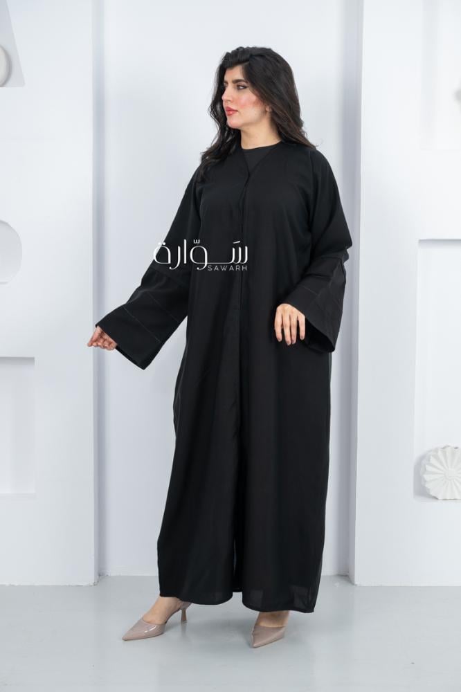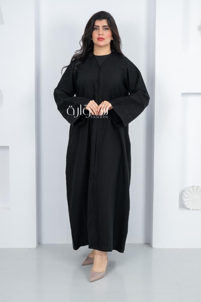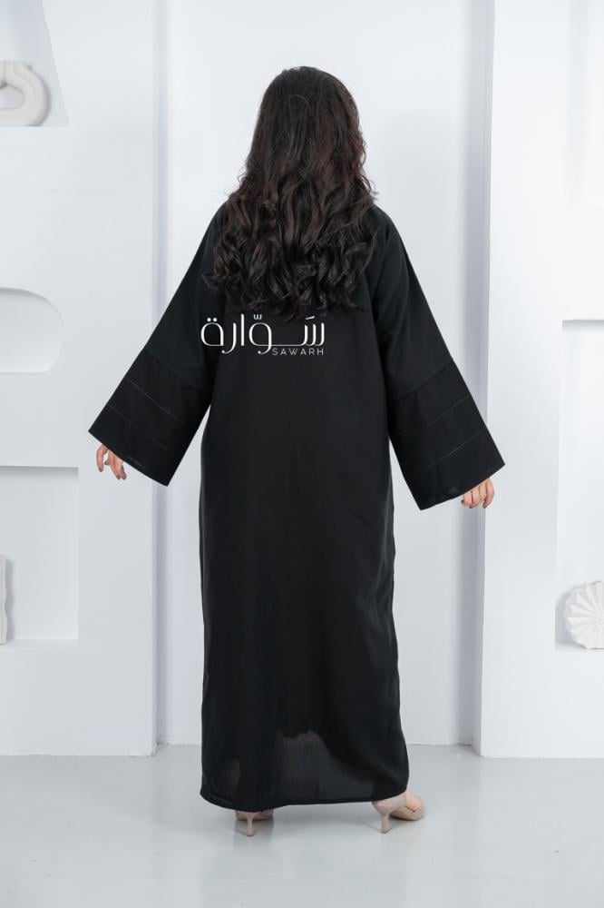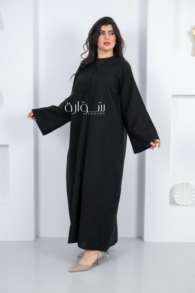 من عبايات سوارة، نقدم لكِ هذه العباية المصنوعة من الكتان الفاخر، بتصميم عملي وأنيق يناسب إطلالتك اليومية والرسمية. تأتي بقصة استريت المميزة التي تمنحك مظهراً راقياً، مع أكمام مربعة مزينة بالقيطانات لمسة فريدة تعزز جمال التصميم.